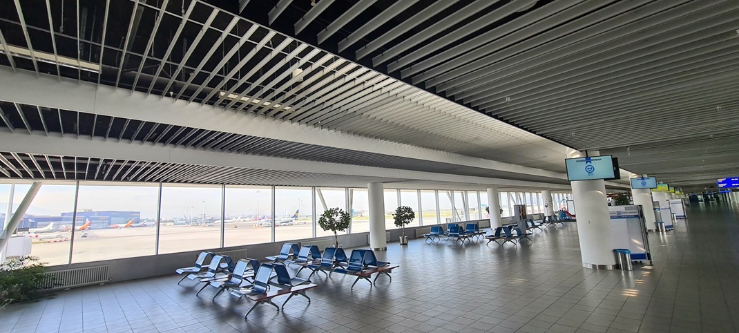 The DOBNER vertical slat ceiling is one of the most affordable ceiling systems for very large ceiling areas, especially for airport terminals. DOBNER has developed a support rail with variable slat spacing. This means that additional savings of up to approx. 85% are possible. White or aluminum colored aluminum panels are mostly used. With DOBNER you have the option of using the entire RAL color range.